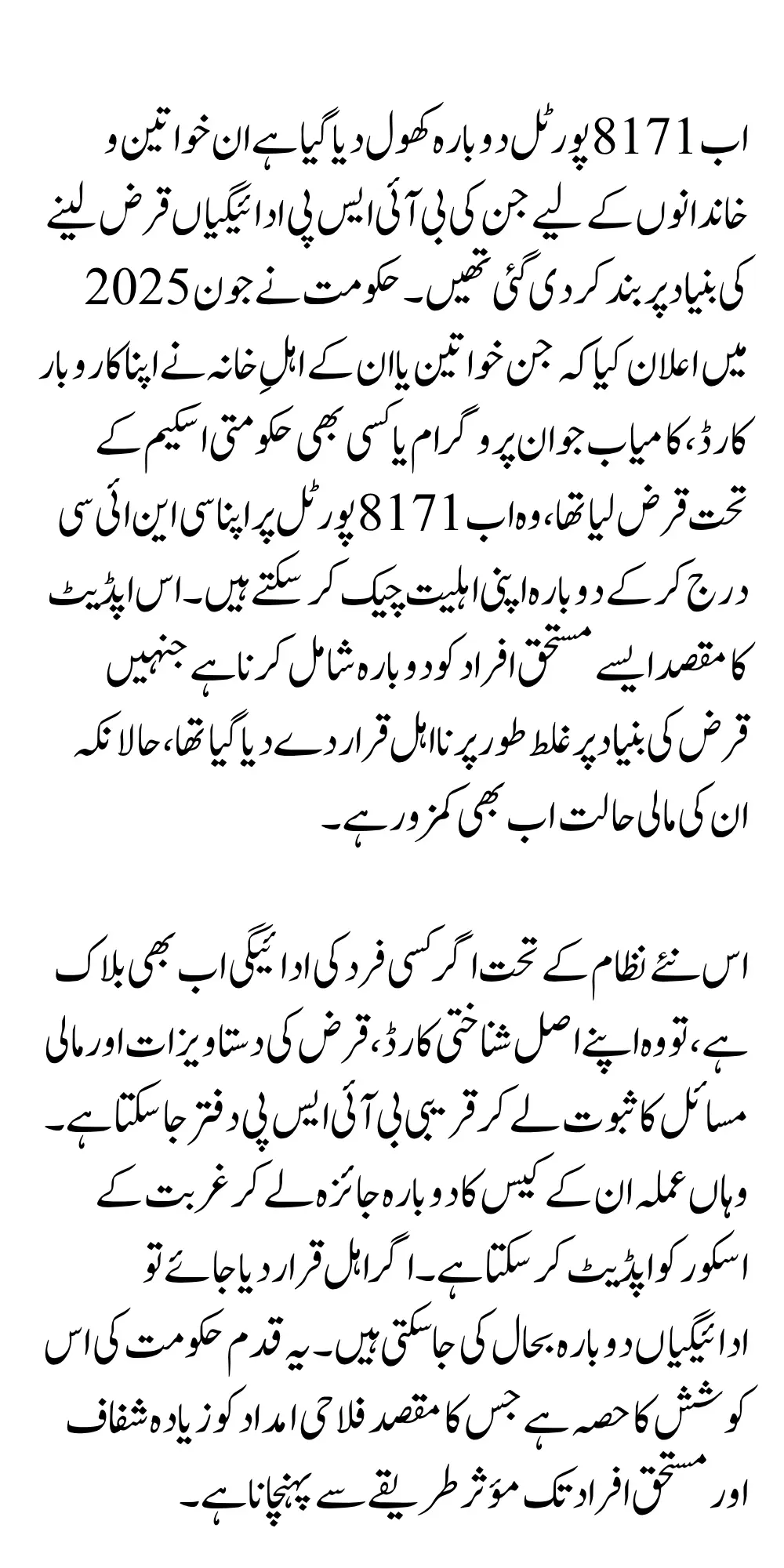 The reopening of the 8171 portal for loan-affected BISP beneficiaries represents a crucial opportunity for families to regain access to financial support. It also demonstrates the government’s willingness to adapt its welfare systems to be more inclusive, just, and data-driven.