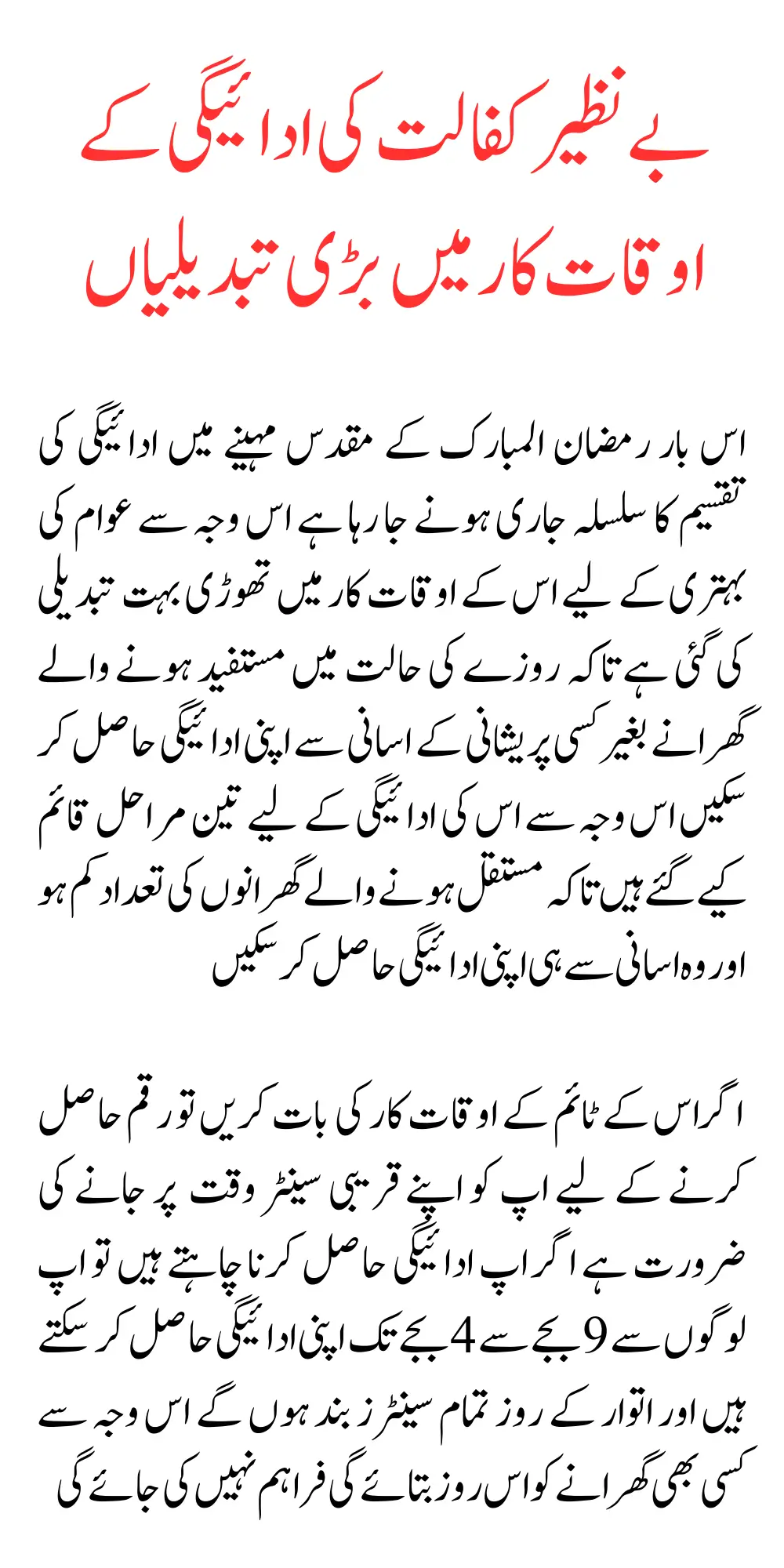 And the money is still being released. As soon as its payment is completed, the Kafalat program payment will be delivered to the poor people immediately after that, and its payment will be provided in the month of Ramadan, due to which its working hours have also been slightly changed so that poor families do not have to go through difficulties during the fasting period and they can easily receive their payment.