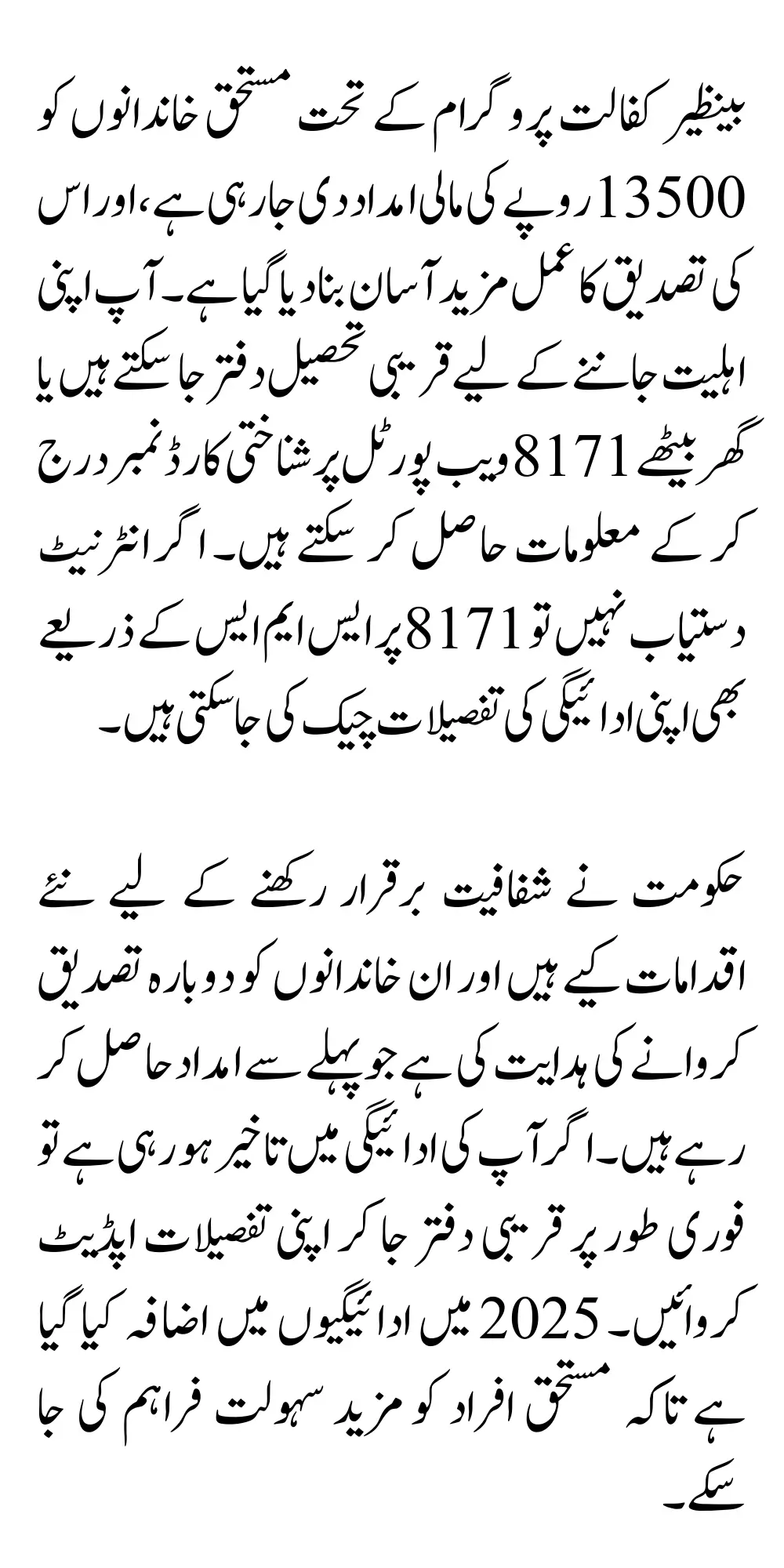 Benazir Kafalat 2025 Payment Check Through 8171 Web Portal