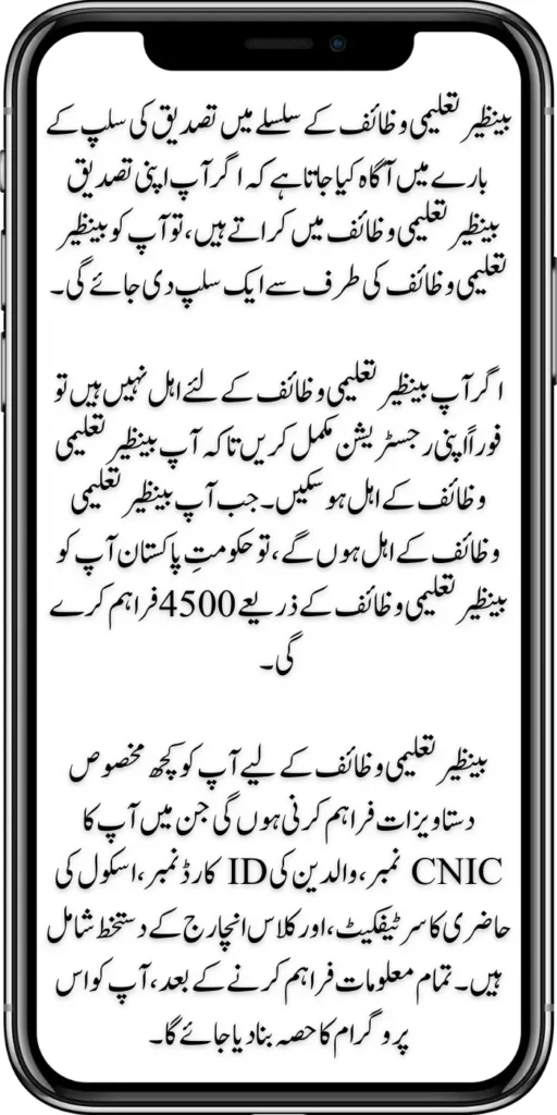 Benazir Taleemi Wazaif Verfication Dacument