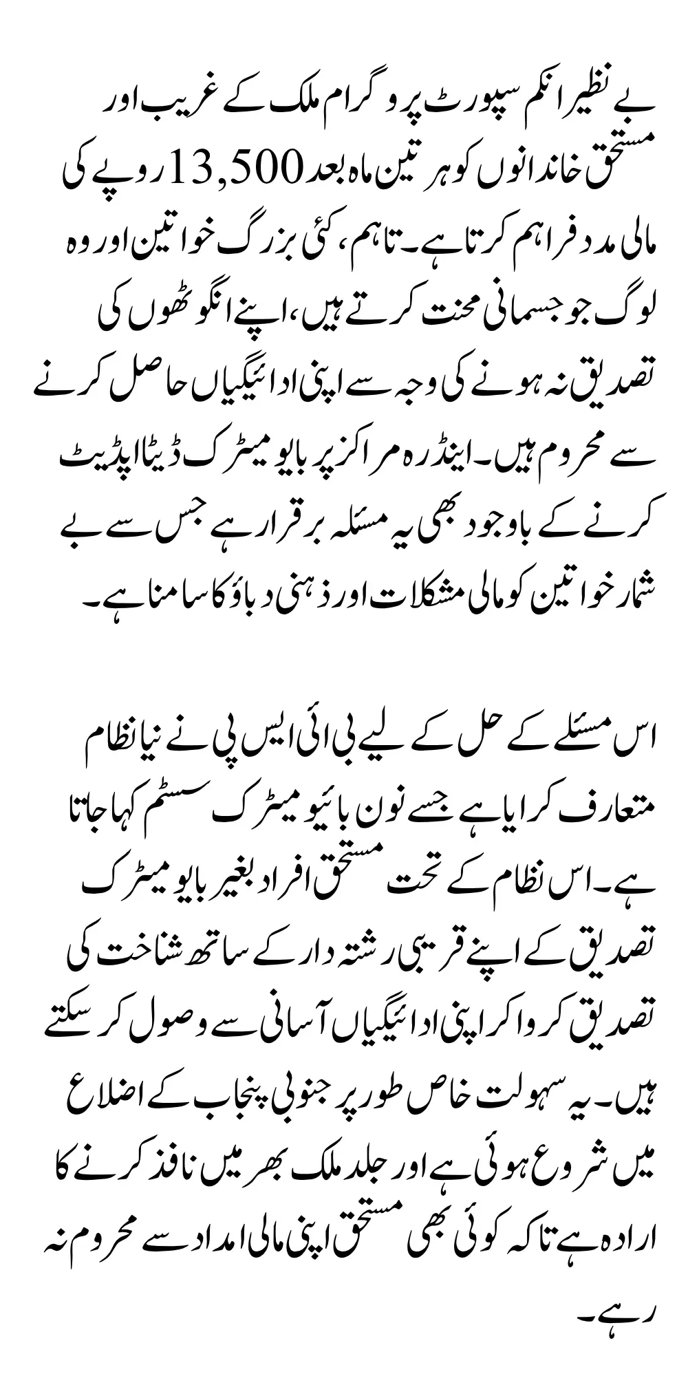 This system primarily targets those who have already updated their fingerprints with NADRA but still face rejections at payment points. NON-BVS has been piloted in multiple districts of South Punjab and has shown promising results, paving the way for nationwide adoption. This approach ensures that beneficiaries receive their due payments without any further delay or inconvenience.
