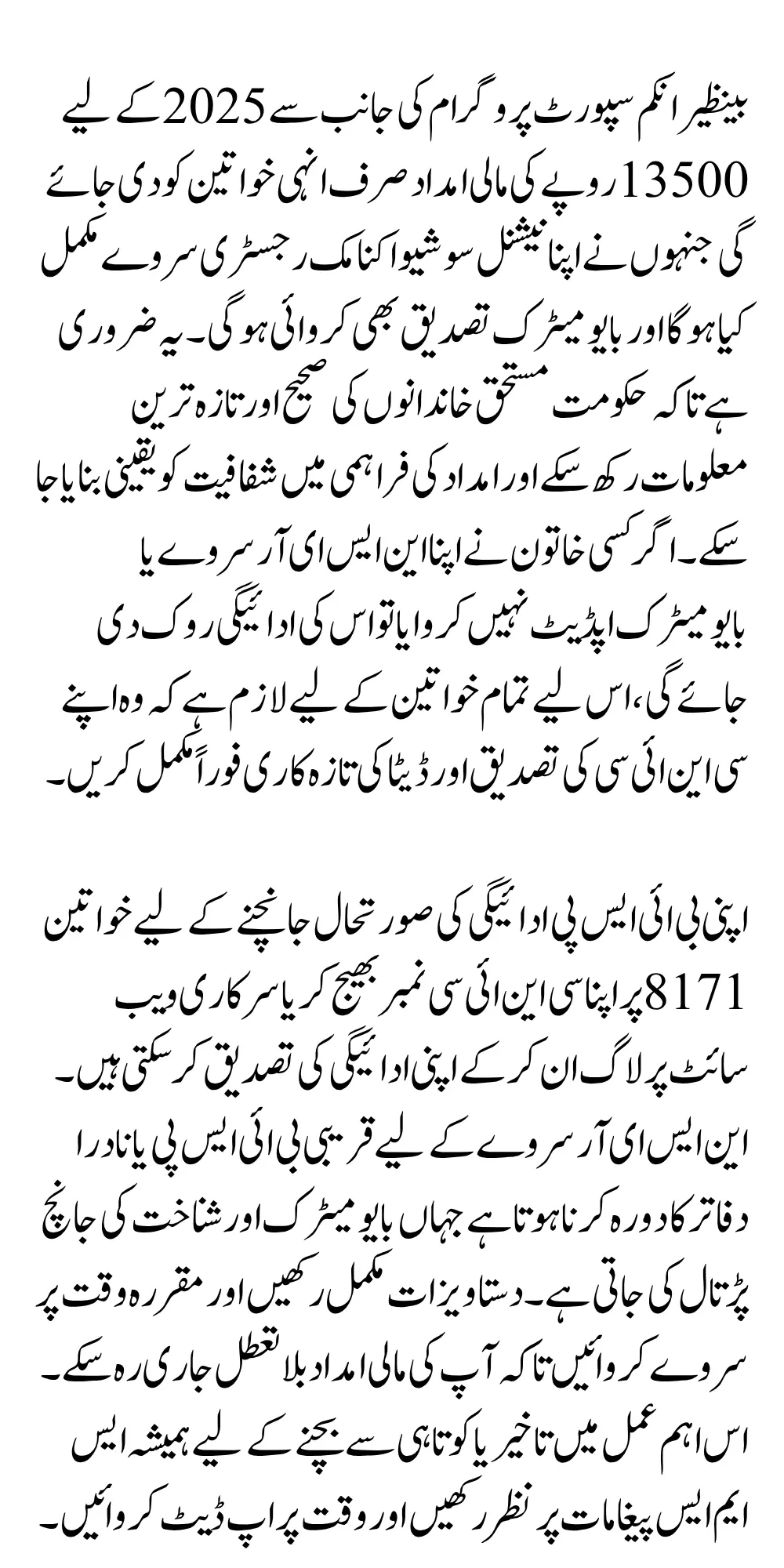 The government uses this data to ensure aid reaches deserving families and prevents misuse or duplication Delaying the survey or ignoring biometric updates risks removal from the program Timely action not only secures your payment but also helps maintain the integrity and effectiveness of the social safety net.