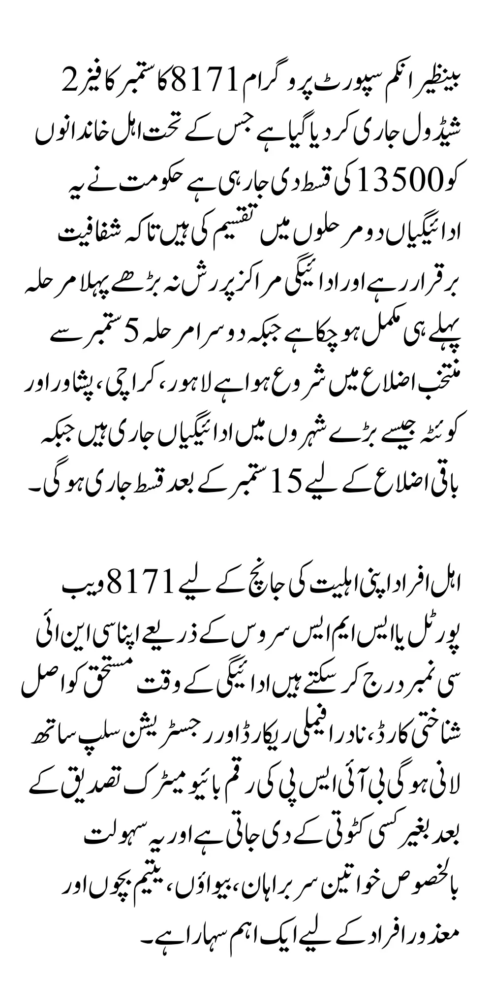 BISP 8171 September 2025 Installment Amount and Coverage