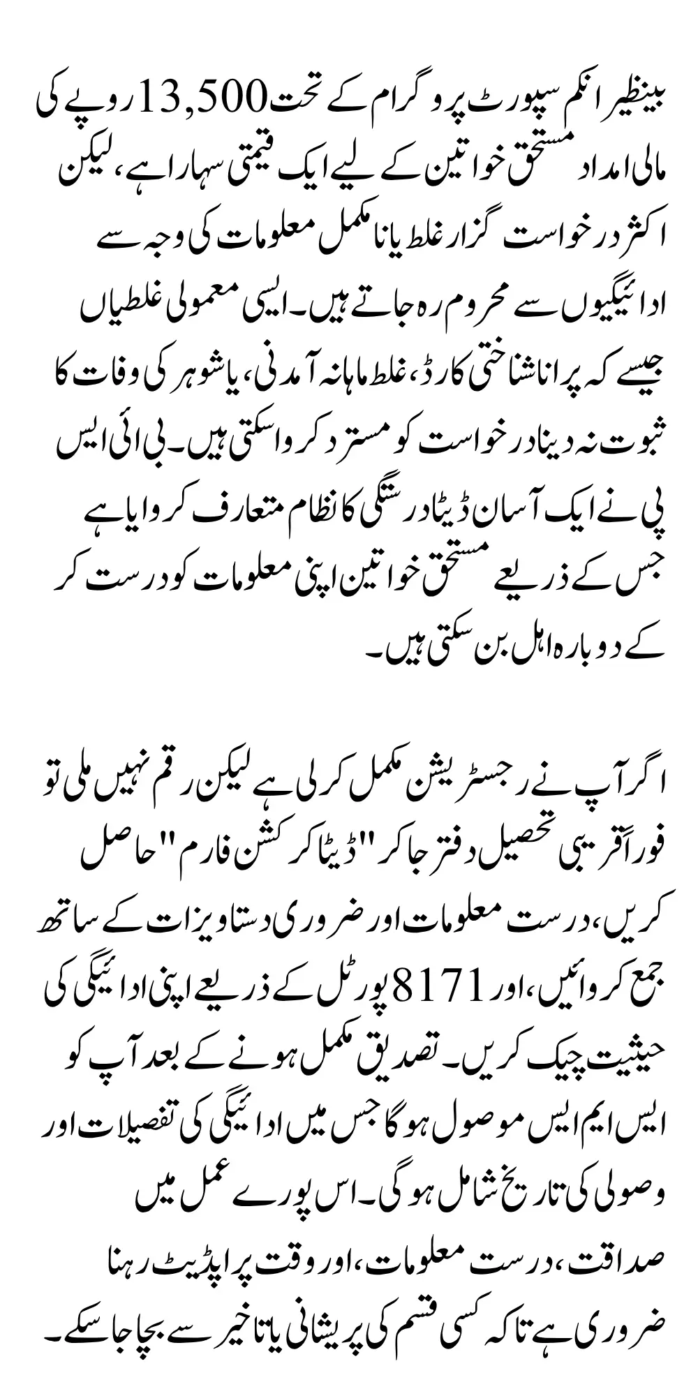 Applicants who haven’t received payments despite registration often overlook these critical errors in their forms. Verifying and correcting this information early can fast-track the approval and allow you to start receiving the Rs. 13,500 BISP support.