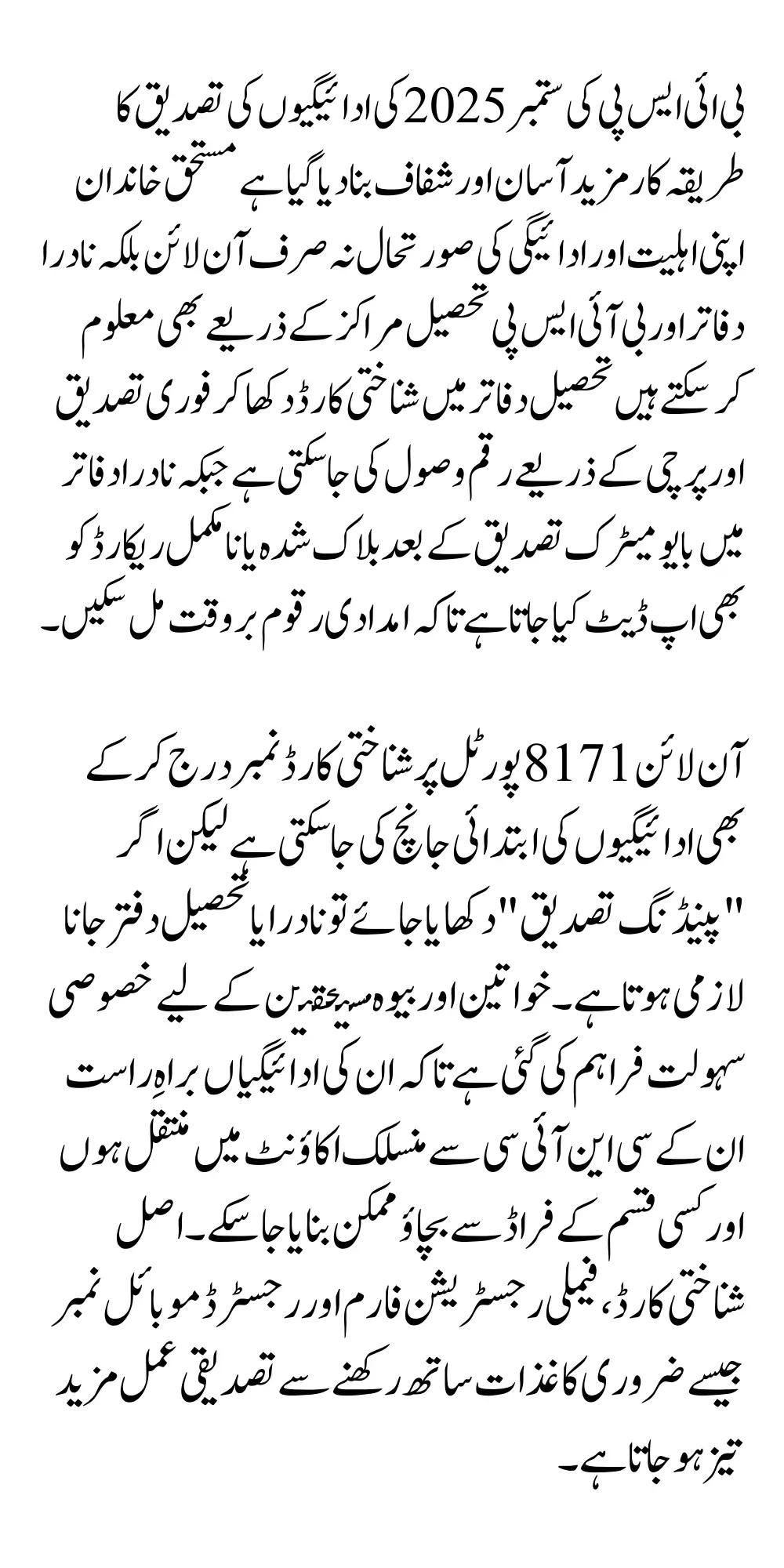 Beneficiaries who want to confirm their September 2025 BISP payments can visit their nearest Tehsil office. The Tehsil centers are designed to provide one-window support for all types of verifications related to the BISP program. By presenting their CNIC, applicants can quickly get information about their eligibility and pending payments.