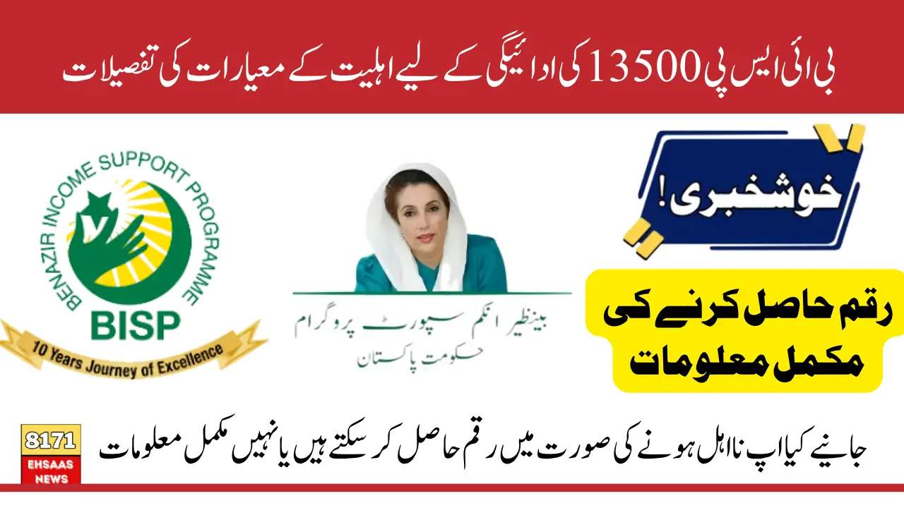 بی ائی ایس پی کی طرف سے مالی امداد کو حاصل کرنے کے لیے یہ ضروری ہے کہ پہلے مستفید ہونے والے گھرانے اہلیت کے معیارات پر پورا اتریں اور رجسٹریشن کے بعد وہ تمام تر تفصیلات سے اپ ڈیٹ ہوں اور انہوں نے اپنی معلومات کی تصدیق کے لئے اپنی جانچ پڑتال کے عمل کو یقینی بنایا ہو ان کے لئے مئی کی ادائیگیوں کی تفصیلات جاری کر دی گئی ہیں اور وہ اب بغیر کسی پریشانی کے رقم حاصل کرنے کے لئے قریبی سینٹر جا سکتے ہیں اور وہاں جا کر اپنی رقم کو حاصل کرنے کے لئے انگلیوں کے نشانات ملا سکتے ہیں