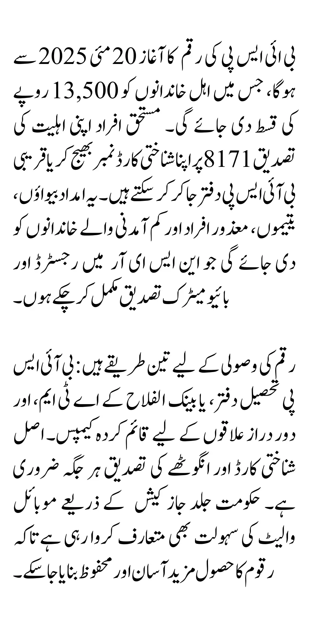 Always use your original CNIC and complete biometric verification to receive your full payment. Never pay bribes or accept deductions. Help lines and monitoring teams are available to assist and protect you The upcoming mobile wallet system is also a positive step that promises to make future payments even easier and safer.