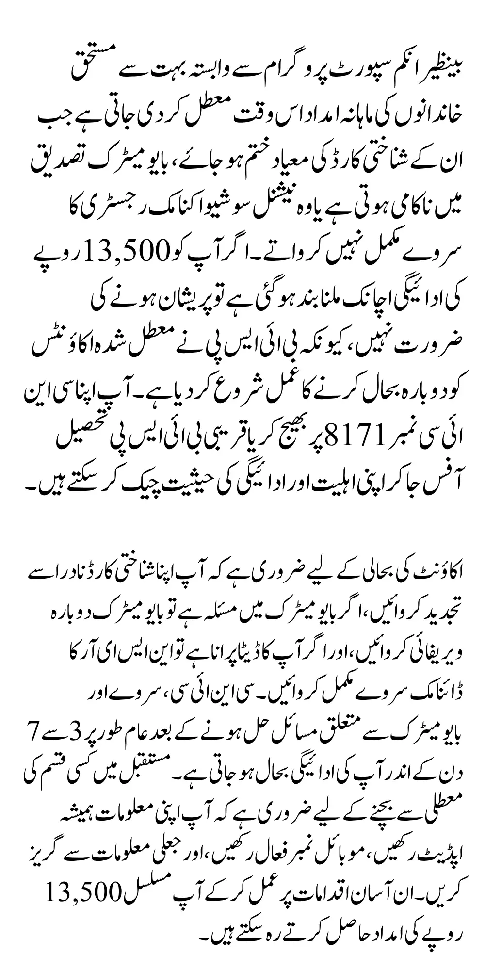 To avoid future suspension, it’s essential to keep your information up to date. Simple steps like renewing your CNIC before it expires, updating your mobile number, and responding to survey calls can keep your eligibility active throughout the year.