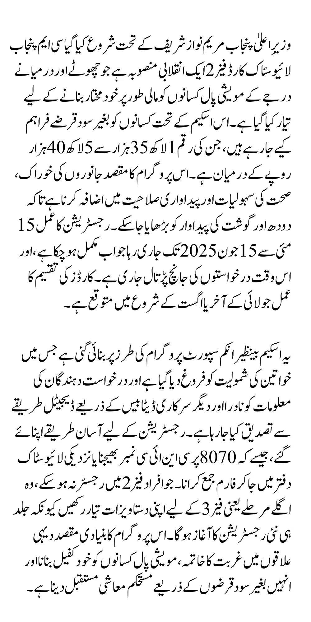 If you missed the registration deadline, don’t lose hope. A Phase 3 is expected to launch soon. Similar to how BISP periodically opens registration for new beneficiaries, the Livestock Card program will offer more chances for those who couldn’t apply in the previous rounds.