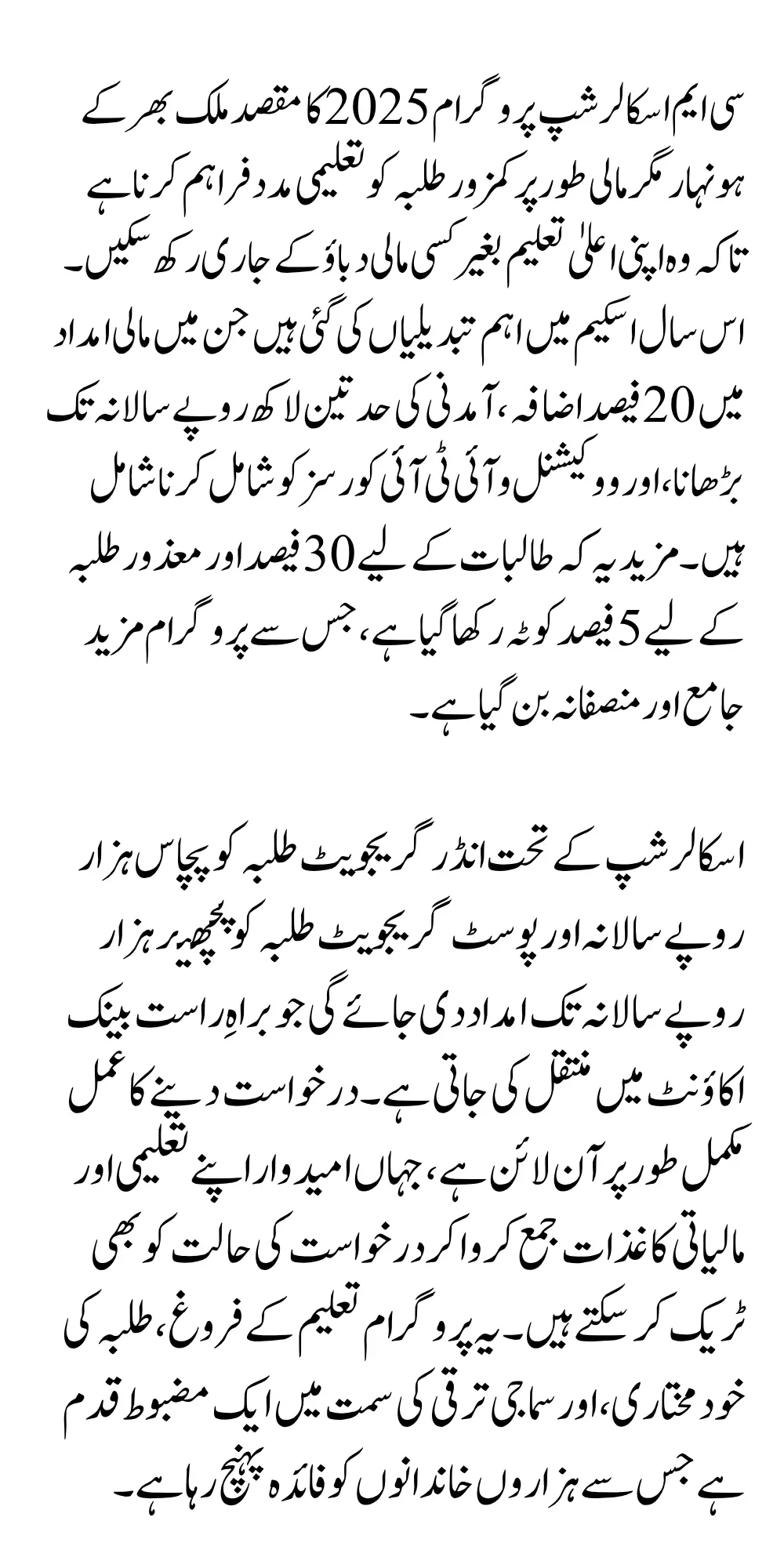 CM Scholarship Program 2025 Check Eligibility Criteria