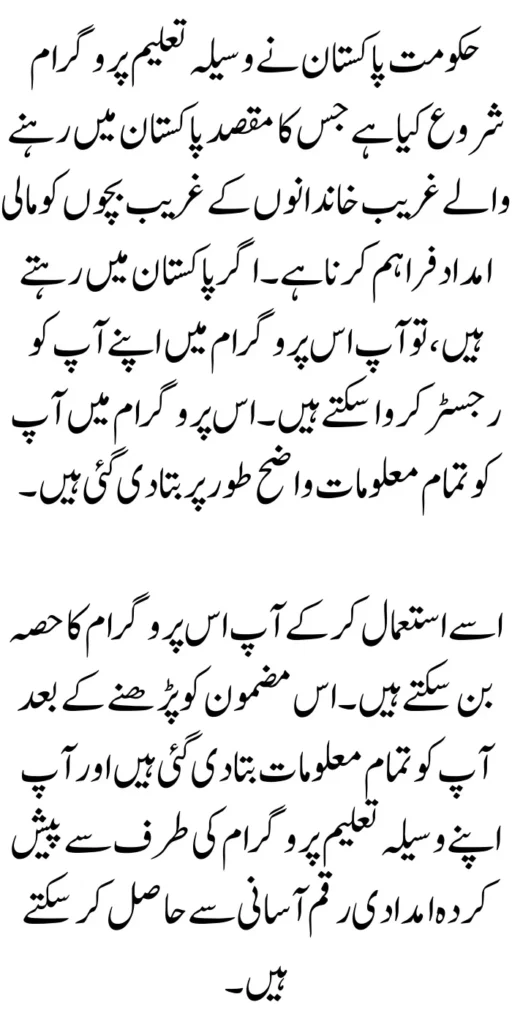 and get the financial assistance given by the government and Pakistan by being a part of this program. You are also told the registration procedure within this article and how and where you can get your financial aid. That too has been told to you within this article so you can read the case article without any problem.