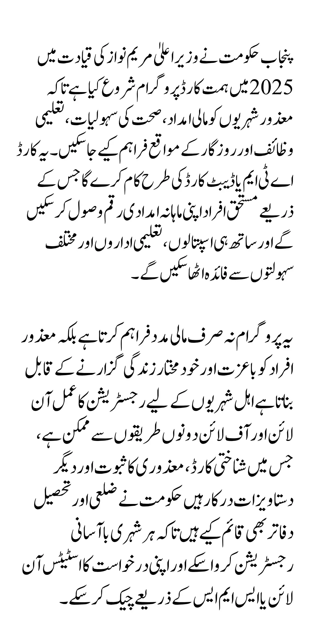 Maryam Nawaz Himmat Card 2025 Registration: Punjab government under the leadership of Chief Minister Maryam Nawaz has launched the Himmat Card Program 2025 to support differently-abled citizens across the province this initiative marks a major step toward empowering individuals who face physical or mental challenges by providing them with financial aid, healthcare access, education support, and employment opportunities.