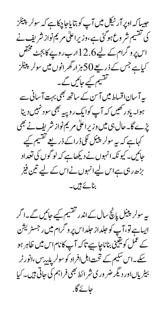 Under this scheme, people will be able to get up-fold panels without any delay and they will have to pay in installments. This is mentioned in the scheme released by Chief Minister Punjab Maryam Nawaz, for more details and information, you can see the article on this website for complete details on how you can ensure your participation in this program.
