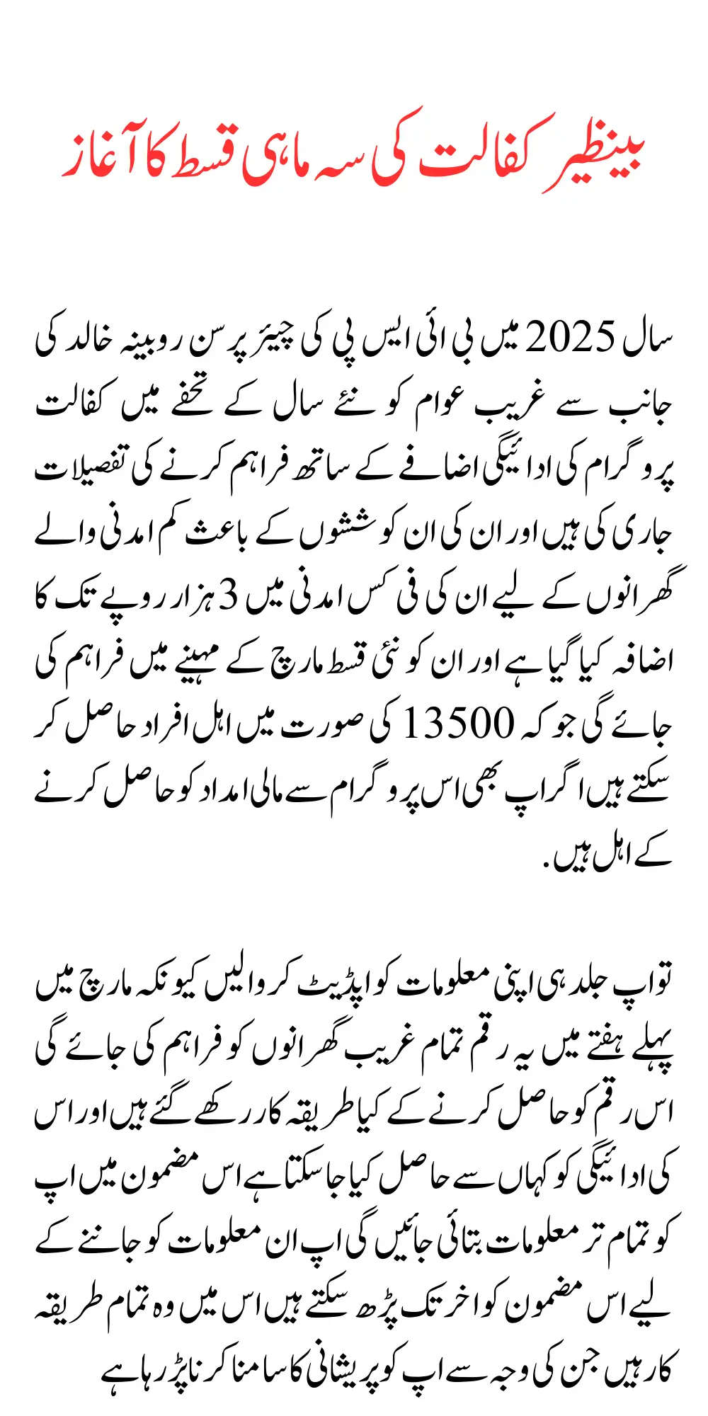 Benazir Kafalat 2025 13500 Payment